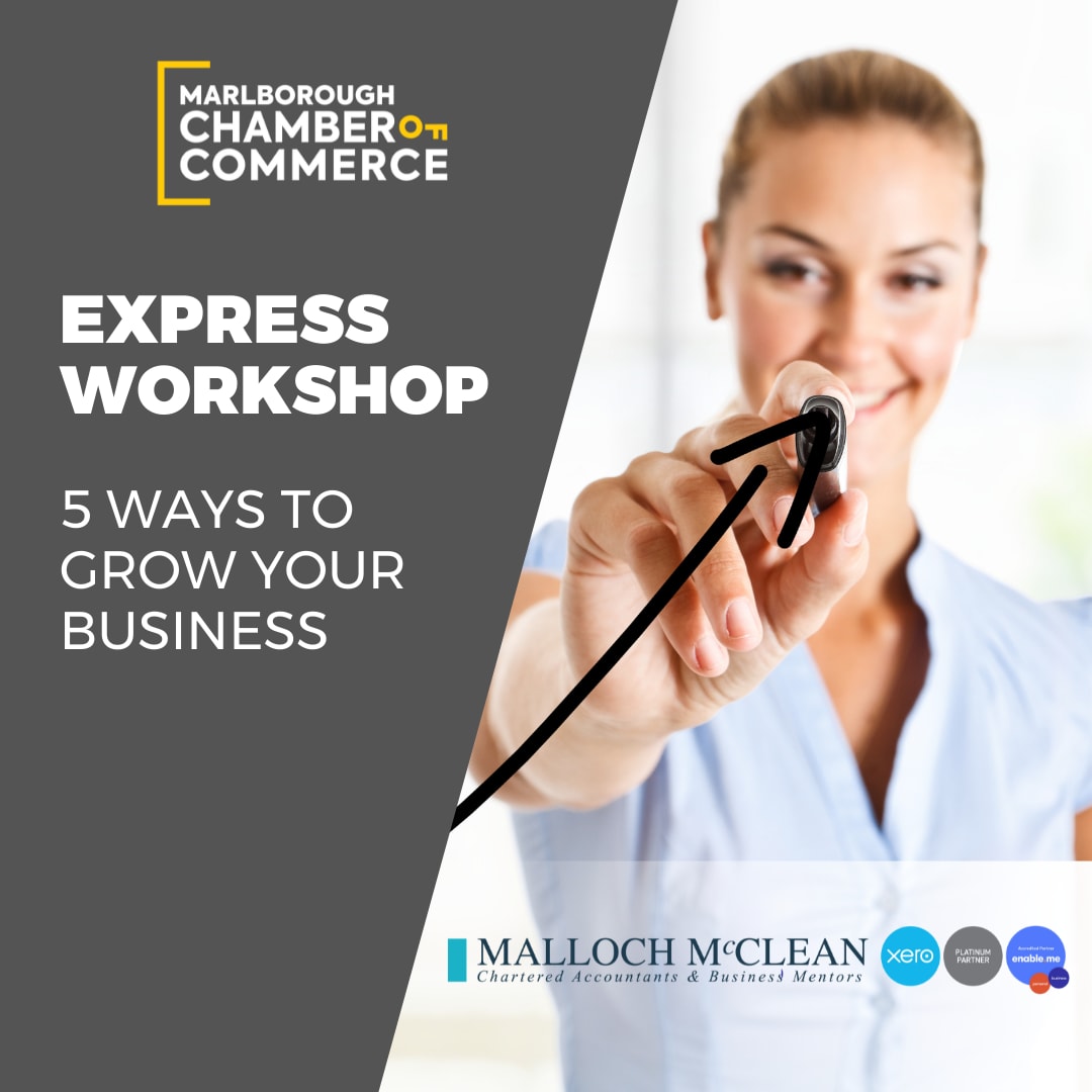 We will show you exactly how these 5 ways will actually generate more Sales and Profit through our Growth Equation Model, it’s a must see! Complimentary seminar for Marlborough Chamber members where you’ll:- Understand how to map a clear path to get your business from A to B- Discover the seven ways to grow your business- Identify strategies to grow and improve your business- Understand how to adapt your business for greater success- Achieve continuous growth via implementation of best practice strategies